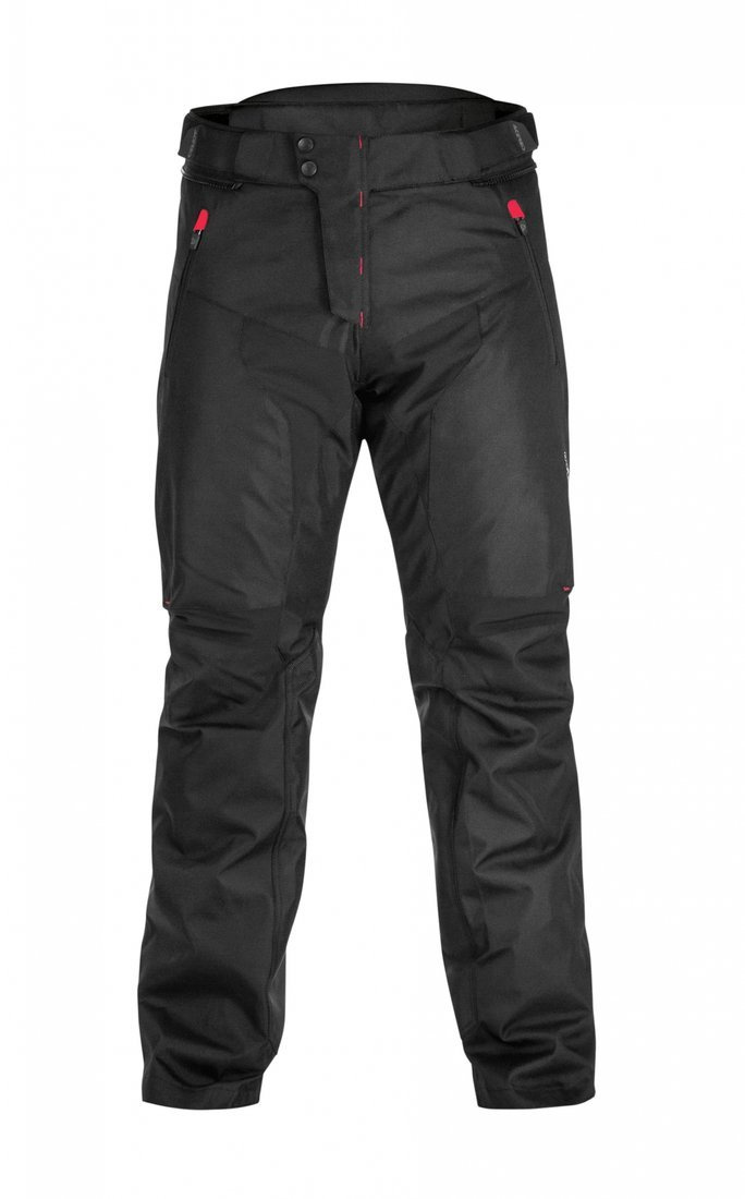 Tourist fit. Belüftung der Hüften. Verstellbare Taille mit elastischem Bund. Haken- und Knopfverschluss. Reflektierende Einsätze vorwärts und hinter. 2 Taschen. CE EN 1621-1 ZERTIFICAT.