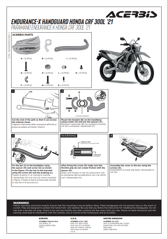 Handprotektoren Acerbis ENDURANCE-X passend für Honda CRF 300L motorrad cross