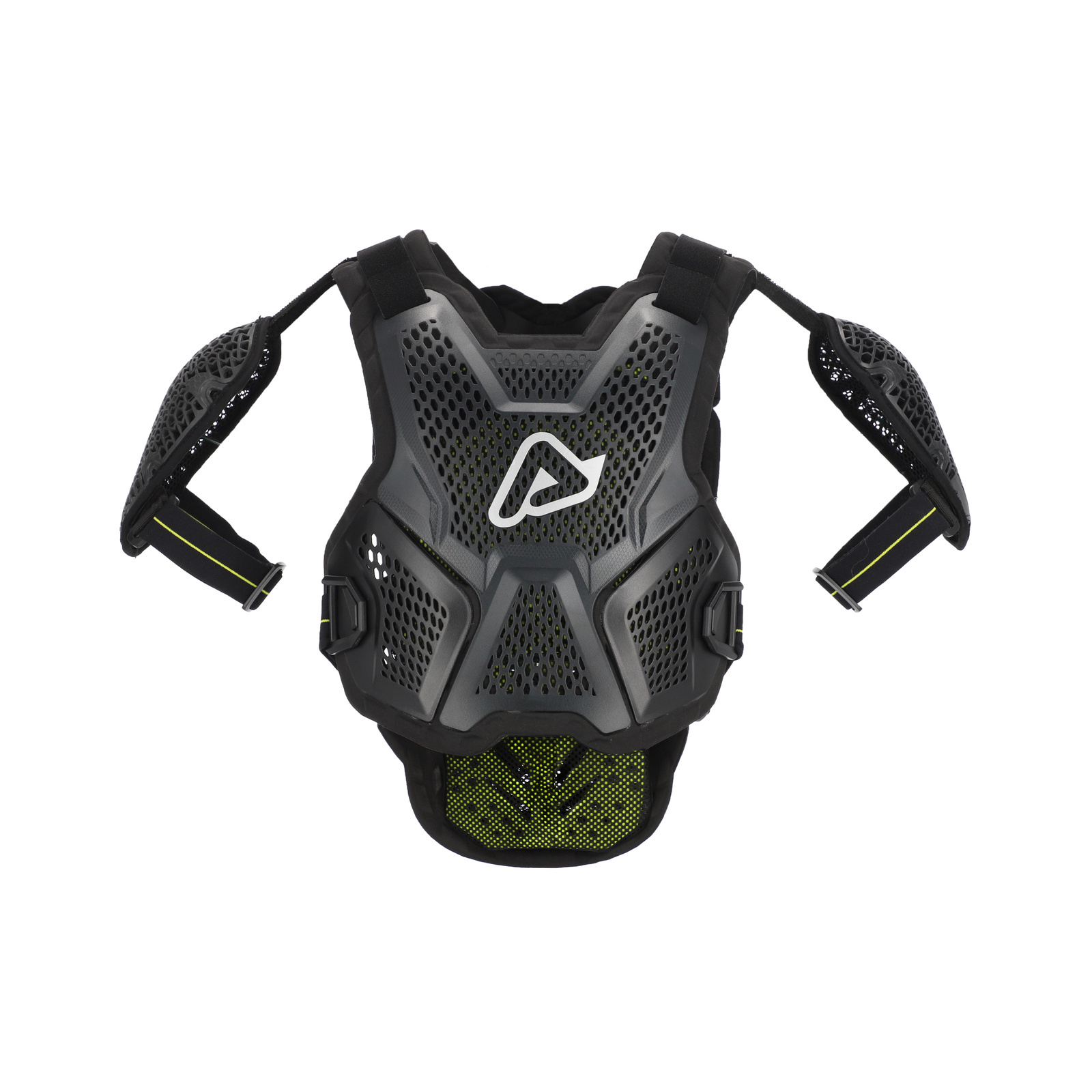 Die Körperpanzerung passt sich dank der Anpassungen an den Schultergurten und an der Taille allen Körpertypen an und bietet hervorragenden Schutz und Bewegungsfreiheit. Ausgestattet mit superbelüfteten Kunststoffplatten, die sich dem Körper anpassen und auf weichem Bioschaum befestigt sind, für mehr stoßdämpfenden Schutz und bessere Passform.