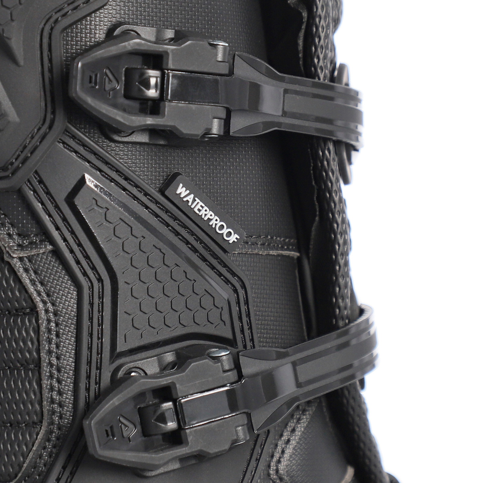 Rutschfeste Sohle mit doppelter Dichte und großen offenen Einsätzen, die Traktion bietet und die Ansammlung von Schlamm verhindert. Die abriebfeste Krallenlaufsohle bietet beispiellosen Halt und bietet Schutz und hohe Leistung. Die vollständige Abdeckung der Zehen erhöht den Schutz des Fahrers, ohne die Bewegung einzuschränken. ONEWAY-Klettverschluss in einer Richtung oben, der es ermöglicht, die Gamasche durch einfaches Schließen des oberen Hebels perfekt am Bein anzubringen.